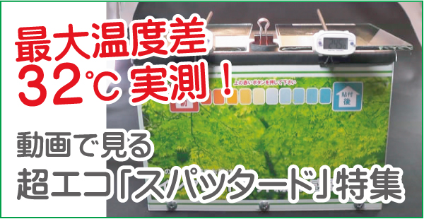 透明単板ガラス(5mm厚)を2枚用意し、 左側はフィルム貼付け無し、右側にスパッタード70を貼付け、 太陽のジリジリする暑さを感じさせる赤外線の模擬光を用意し、遮熱効果の比較テストを行いました。